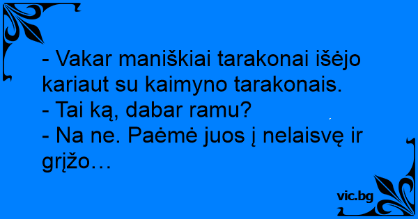 - Vakar maniškiai tarakonai išėjo kariaut su kaimyno tarakonais.