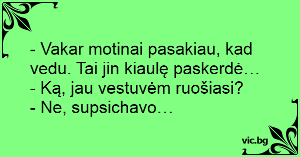 - Vakar motinai pasakiau, kad vedu. Tai jin kiaulę paskerdė…