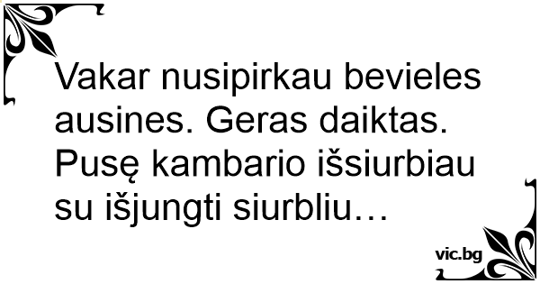 Vakar nusipirkau bevieles ausines. Geras daiktas. Pusę kambario išsiurbiau su išjungti siurbliu…