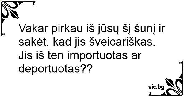 Vakar pirkau iš jūsų šį šunį ir sakėt, kad jis šveicariškas. Jis iš ten importuotas ar deportuotas??