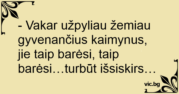 - Vakar užpyliau žemiau gyvenančius kaimynus, jie taip barėsi, taip barėsi…turbūt išsiskirs…