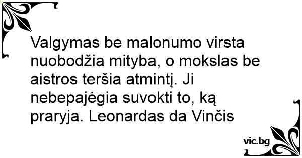 Valgymas be malonumo virsta nuobodžia mityba, o mokslas be aistros teršia atmintį. Ji nebepajėgia suvokti to, ką praryja. Leonardas da Vinčis