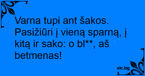 Varna tupi ant šakos. Pasižiūri į vieną sparną, į kitą ir sako: o bl**, aš betmenas!