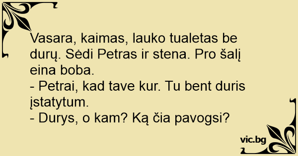 - Petrai, kad tave kur. Tu веnт duris įstatytum.