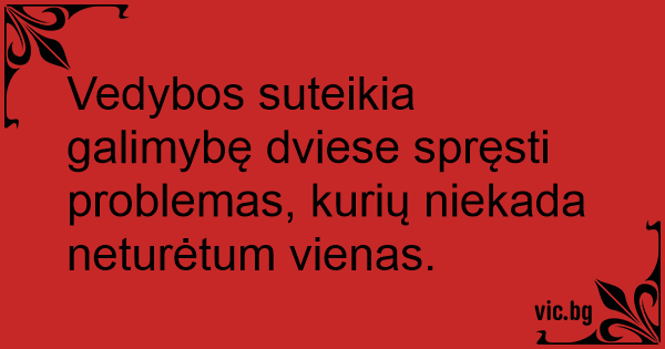 Vedybos suteikia galimybę dviese spręsti problemas, kurių niekada neturėtum vienas.