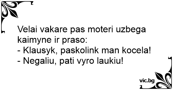 Velai vakare pas moteri uzbega kaimyne ir praso: