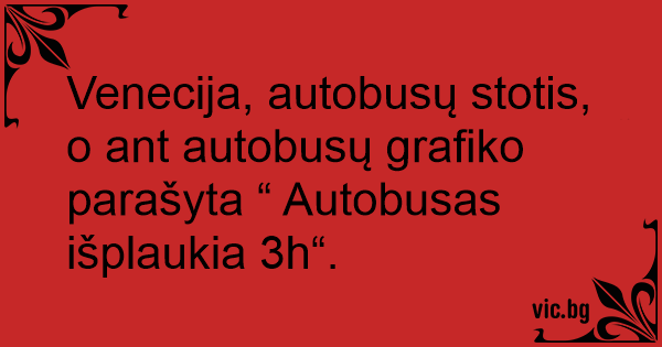 Venecija, autobusų stotis, o ant autobusų grafiko parašyta “ Autobusas išplaukia 3h“.