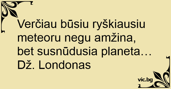 Verčiau būsiu ryškiausiu meteoru negu amžina, bet susnūdusia planeta… Dž. Londonas