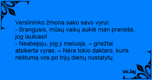 - Brangusis, mūsų vaikų auklė man pranešė, jog laukiasi!