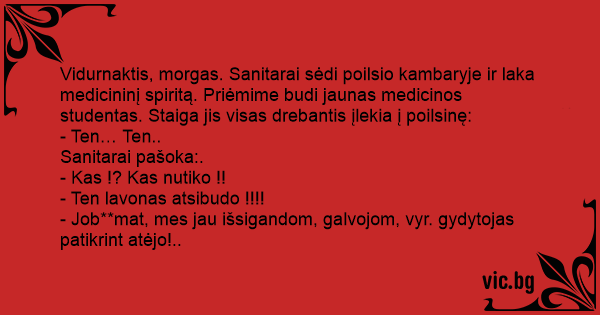 - Job**mat, mes jau išsigandom, galvojom, vyr. gydytojas patikrint atėjo!..