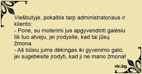 - Pone, su moterimi jus apgyvendinti galėsiu tik tuo atveju, jei įrodysite, kad tai jūsų žmona.