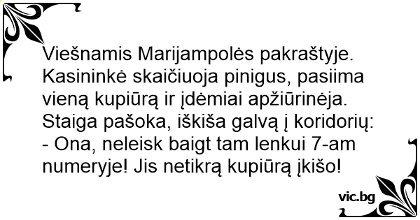 - Ona, neleisk baigt tam lenkui 7-am numeryje! Jis netikrą kupiūrą įkišo!