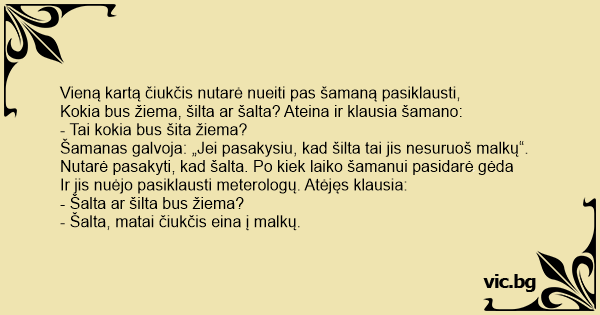 Ir jis nuėjo pasiklausti meterologų. Atėjęs klausia: