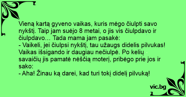 - Vaikeli, jei čiulpsi nykštį, tau užaugs didelis pilvukas!