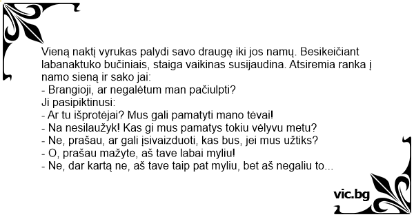 - Na nesilaužyk! Kas gi mus pamatys tokiu vėlyvu metu?