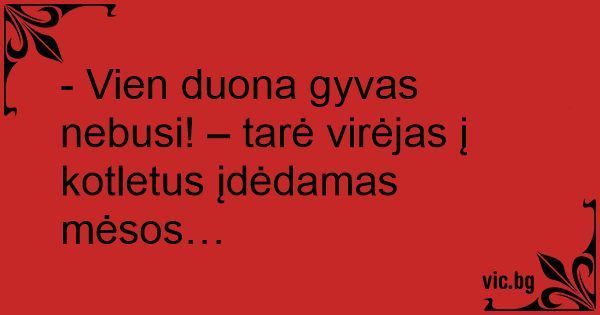 - Vien duona gyvas nebusi! – tarė virėjas į kotletus įdėdamas mėsos…