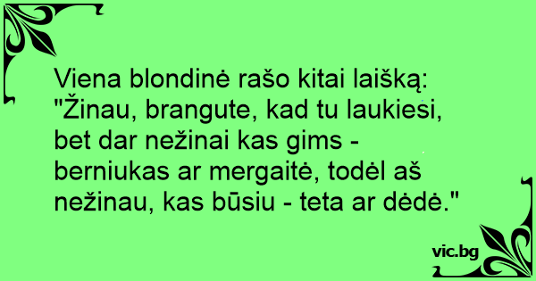 Viena blondinė rašo kitai laišką: