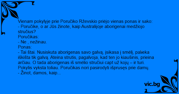 - Poručike, o ar Jūs žinote, kaip Australijoje aborigenai medžiojo stručius?