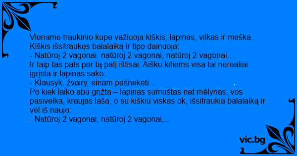 - Klausyk, meška, ten jų natūroj du vagonai!