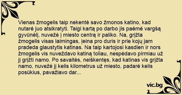 Imao jedan policajac mačku. Čuvao je neko vreme i već mu je dosadila. Odluči on da je se reši. Sledećeg jutra odnese je on u prvu ulicu, kad se vratio kući mačka je bila tu. Drugi dan je odnese u...