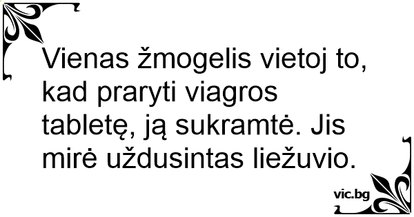 Vienas žmogelis vietoj to, kad praryti viagros tabletę, ją sukramtė. Jis mirė uždusintas liežuvio.