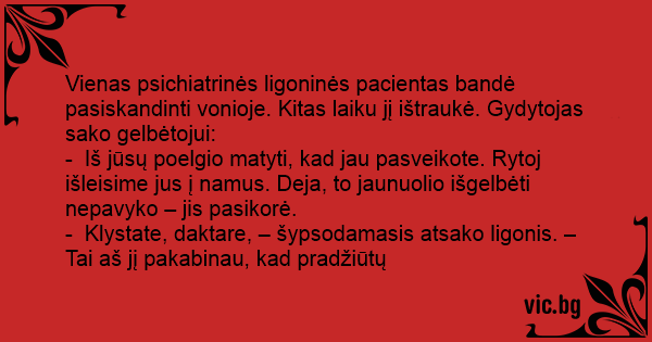 - Klystate, daktare, – šypsodamasis atsako ligonis. – Tai aš jį pakabinau, kad pradžiūtų