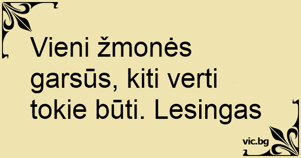 Vieni žmonės garsūs, kiti verti tokie būti. Lesingas