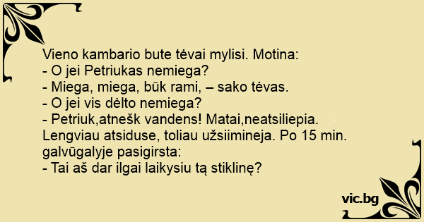 - Petriuk,atnešk vandens! Matai,neatsiliepia.