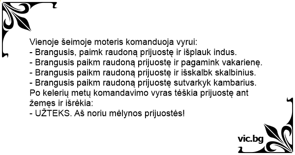 - Brangusis paikm raudoną prijuostę sutvarkyk kambarius.