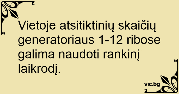 Vietoje atsitiktinių skaičių generatoriaus 1-12 ribose galima naudoti rankinį laikrodį.