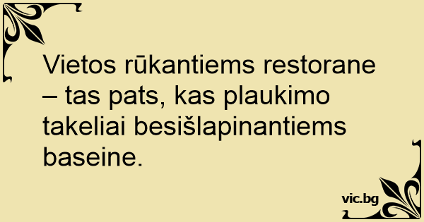 Vietos rūkantiems restorane – tas pats, kas plaukimo takeliai besišlapinantiems baseine.