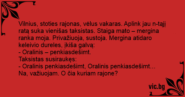 - Oralinis penkiasdešimt, Oralinis penkiasdešimt… Na, važiuojam. O čia kuriam rajone?