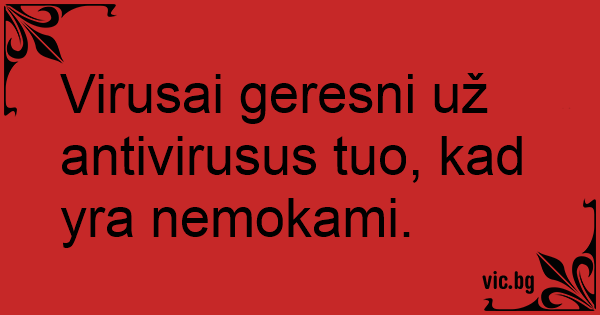 Virusai geresni už antivirusus tuo, kad yra nemokami.