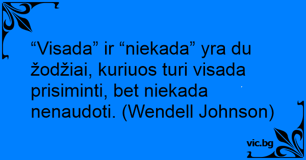 “Visada” ir “niekada” yra du žodžiai, kuriuos turi visada prisiminti, bet niekada nenaudoti. (Wendell Johnson)