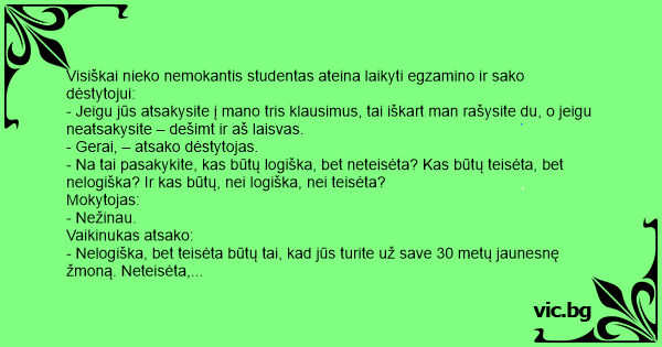 Visiškai nieko nemokantis studentas ateina laikyti egzamino ir sako dėstytojui: