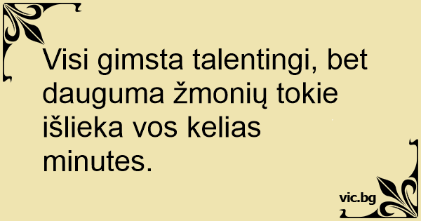 Visi gimsta talentingi, bet dauguma žmonių tokie išlieka vos kelias minutes.