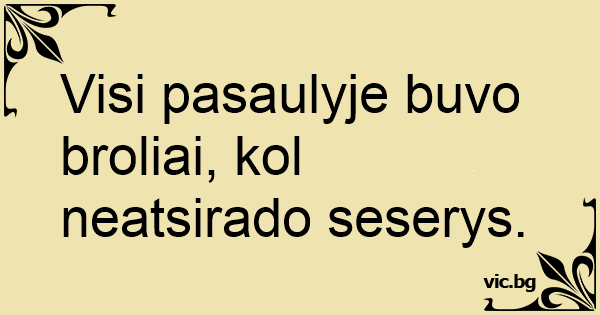 Visi pasaulyje buvo broliai, kol neatsirado seserys.