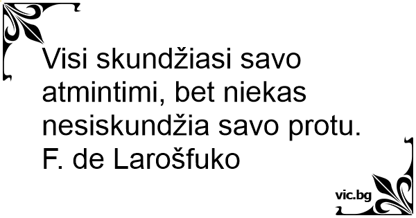 Visi skundžiasi savo atmintimi, bet niekas nesiskundžia savo protu. F. de Larošfuko