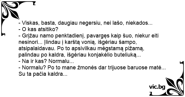 - Normalu? Po to mane žmonės dar trijuose baruose matė... Su ta pačia kaldra...