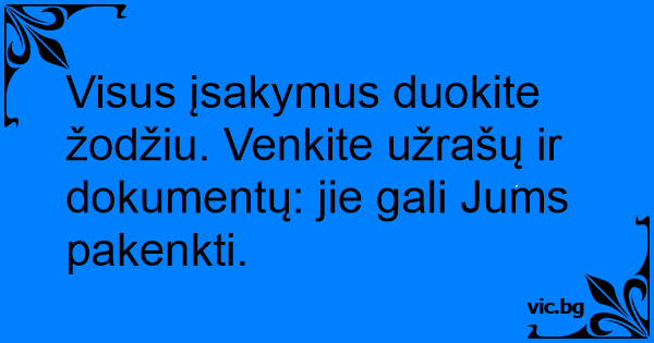 Visus įsakymus duokite žodžiu. Venkite užrašų ir dokumentų: jie gali Jums pakenkti.