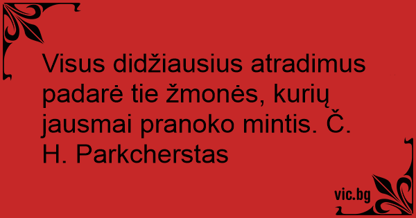 Visus didžiausius atradimus padarė tie žmonės, kurių jausmai pranoko mintis. Č. H. Parkcherstas