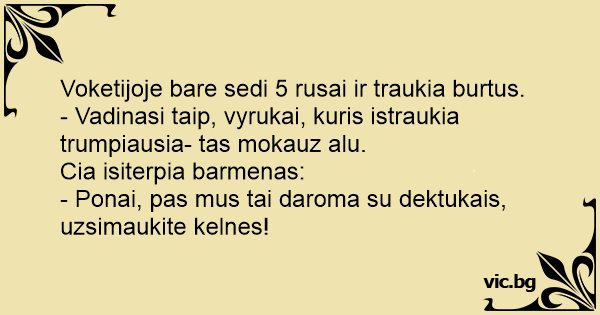 Voketijoje bare sedi 5 rusai ir traukia burtus.