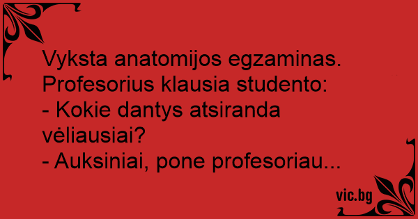 Vyksta anatomijos egzaminas. Profesorius klausia studento: