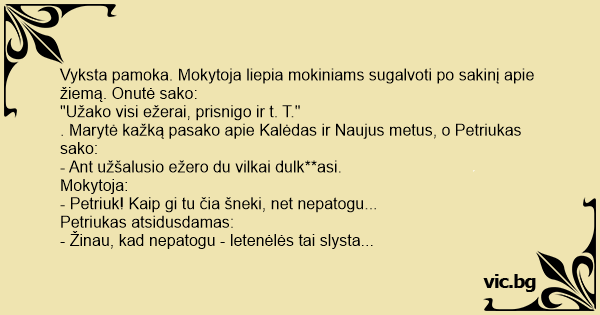 Vyksta pamoka. Mokytoja liepia mokiniams sugalvoti po sakinį apie žiemą. Onutė sako: