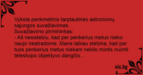 - Aš nesistebiu, kad per penkerius metus nieko naujo neatradome. Mane labiau stebina, kad per tuos penkerius metus niekam nekilo mintis nuimti teleskopo objektyvo dangčio…