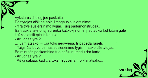 - Aš gi sakiau, kad čia toks negyvena – piktai atsako kitam gale ir padeda ragelį.