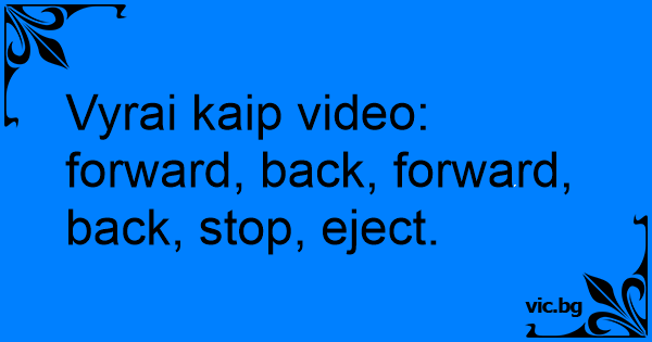 Vyrai kaip video: forward, back, forward, back, stop, eject.