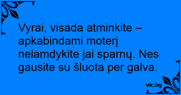 Vyrai, visada atminkite – apkabindami moterį nelamdykite jai sparnų. Nes gausite su šluota per galva.