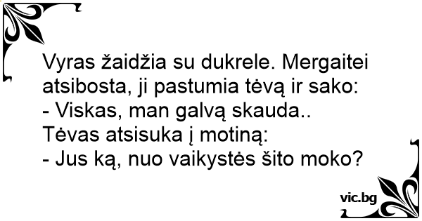 Vyras žaidžia su dukrele. Mergaitei atsibosta, ji pastumia tėvą ir sako: