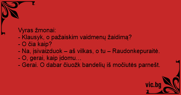 - Na, įsivaizduok – aš vilkas, o tu – Raudonkepuraitė.